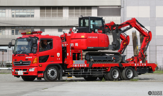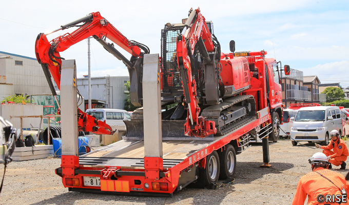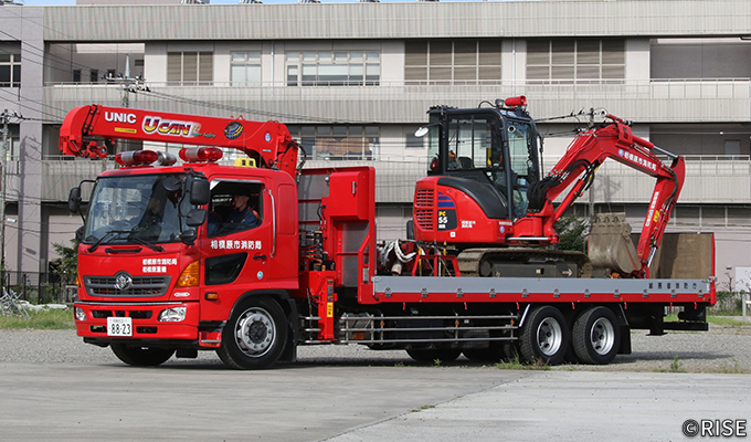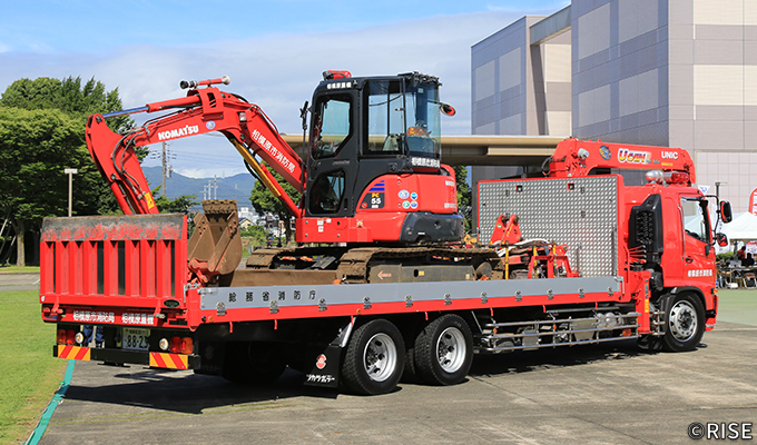 東日本大震災での経験を踏まえ、総務省消防庁では消防機関が自ら重機を保有・活用できる体制を整えるため、重機及び重機搬送車の配備を進めている。