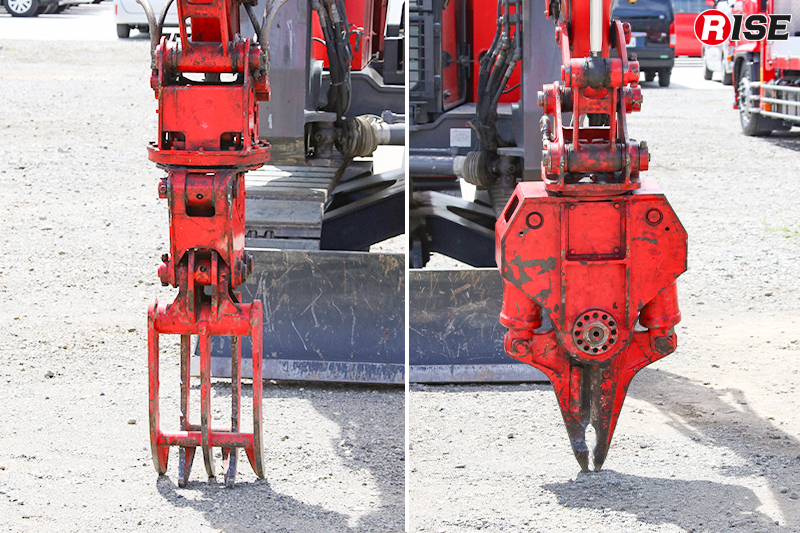 重機は2機が搭載されており、日本キャタピラー製のクローラ式油圧ショベル308CR(中型機)と301.7CR(小型機)を各種アタッチメントとともに荷台に収容している。