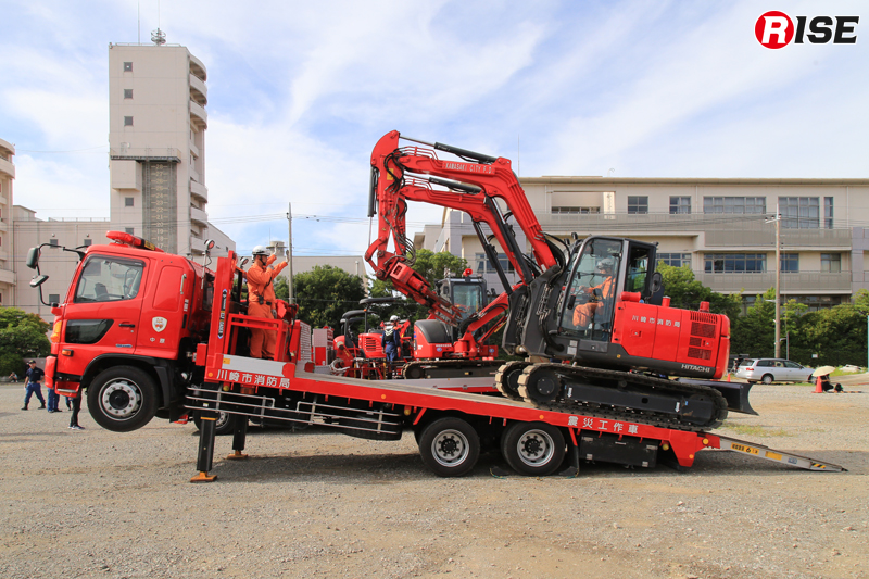 ここでは、第53回消防救助技術関東地区指導会の会場で展示などが行われた重機や搬送車をクローズアップする。