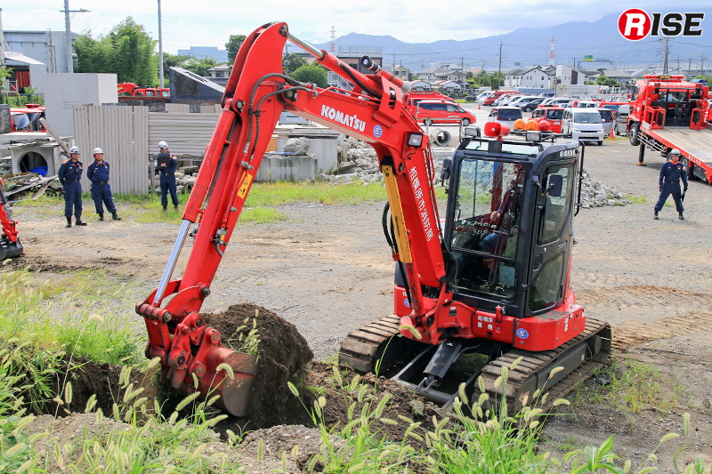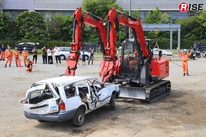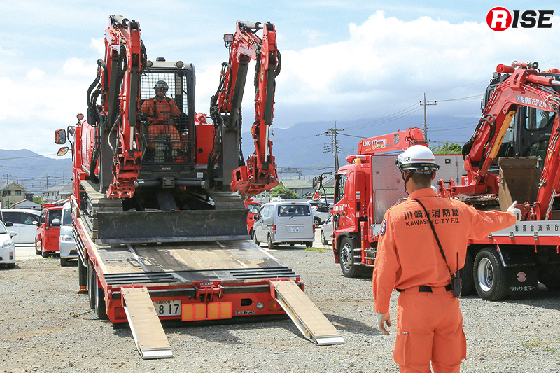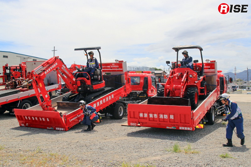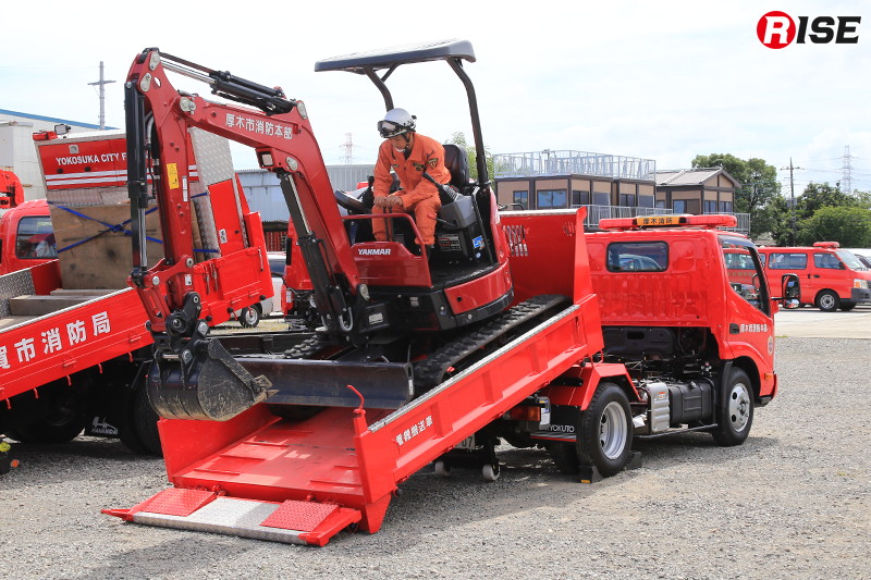 関東地区の消防救助隊員がさらなる技術向上と連携強化を目指すことを目的に実施されているこの指導会では、この機会を通して多くのレスキュアーに消防重機に関する認識を深めてもらおうと、併催イベントとして神奈川県内の消防重機が集結し、展示や訓練が行われた。神奈川県内では横浜市消防局、川崎市消防局、相模原市消防局、横須賀市消防局、厚木市消防本部などで重機運用部隊が活動しており、これら部隊が集結し、指導会会場において装備の展示や性能説明などを実施。ゼッケンをつけた指導会参加隊員が説明を熱心に聞き入る光景が見られた。また、神奈川県内に配備されている消防重機は、性能、サイズ、走行方式、メーカーなどがそれぞれ異なる特徴を持つラインナップとなっており、災害救助訓練場にて行われた訓練では、各重機の特性を活かした土砂災害対応連携訓練が行われた。