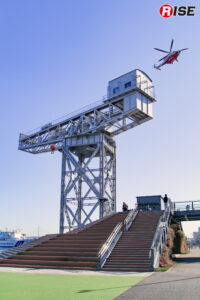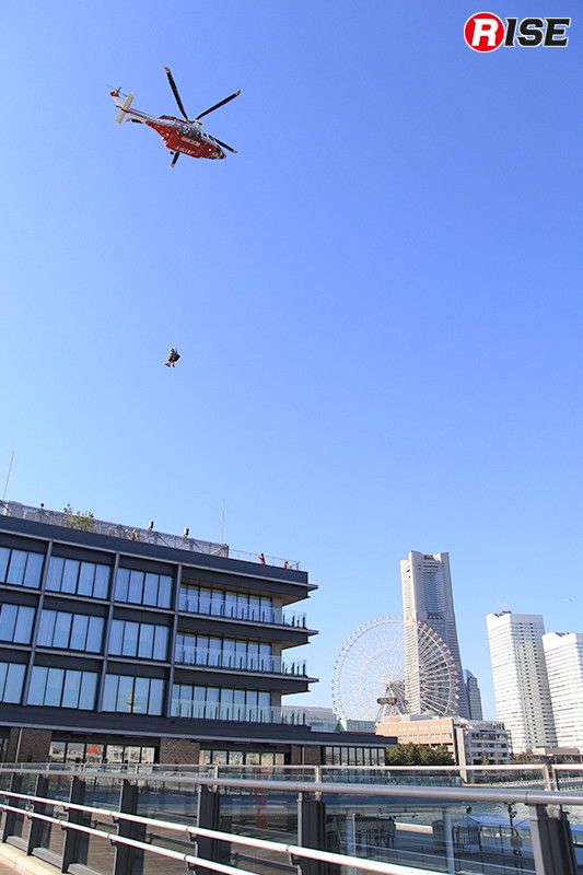 会場となった横浜ハンマーヘッドは、客船ターミナルを中核に商業施設やホテルを融合した複合施設で、横浜・みなとみらい地区に隣接する新港ふ頭に位置する。一帯は観光拠点として高い集客力を有し、平時から多くの来訪者が滞在するエリアとなっている。今回の訓練では、同施設内のホテル「InterContinental Yokohama Pier 8」屋上から要救助者2名を迅速かつ確実に救出することを主眼として実施された。